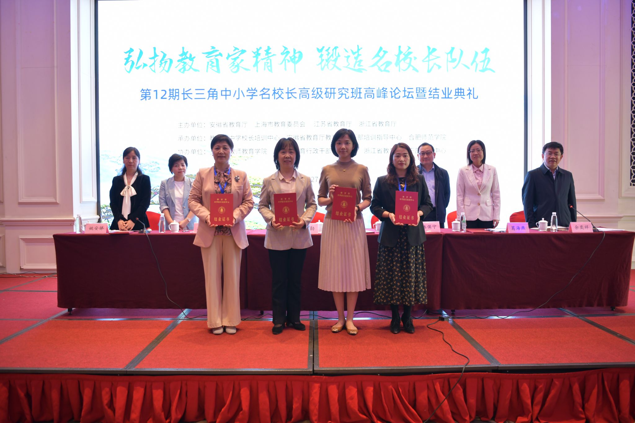 10月25日至27日,由安徽省教育厅、上海市教育委员会、江苏省教育厅、浙江省教育厅主办的第12期长三角中小学名校长高级研究班高峰论坛暨结业典礼在我院举行。论坛以“弘扬教育家精神 锻造名校长队伍”为主题,皖沪苏浙教育厅(教委)相关负责同志出席活动。安徽省教育厅副厅长刘业勋到会讲话,我院副院长周端明在开幕式致辞。